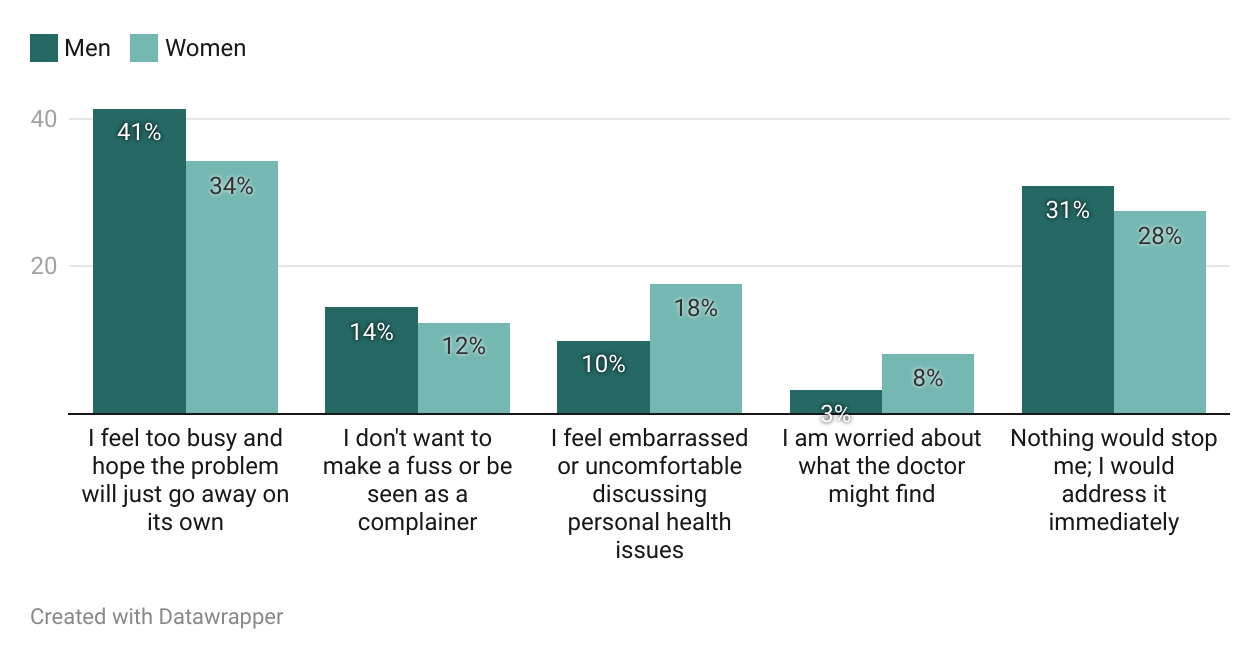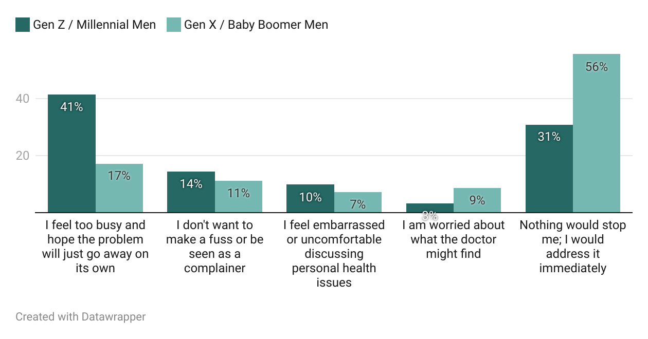 This is more than double the rate of older men (17%). The findings highlight a worrying trend of younger men putting off medical care due to busy lifestyles and competing priorities.